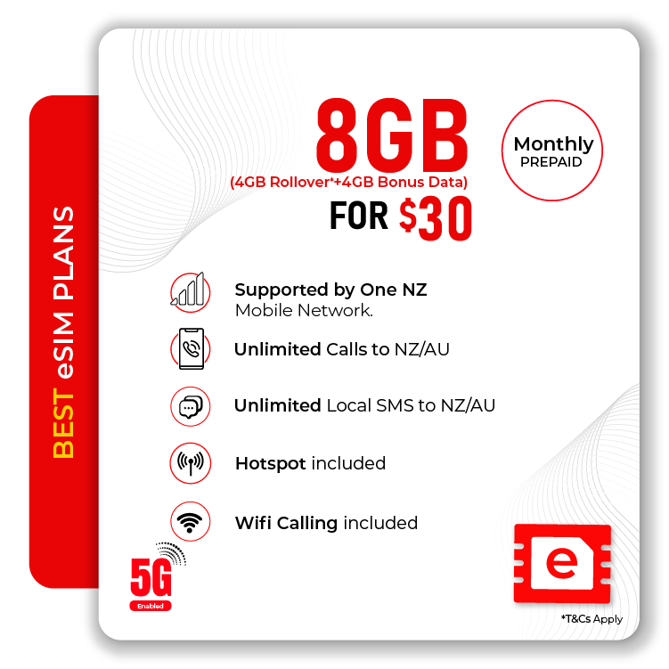 The $30 Telsim prepaid eSIM is ideal if you need a little extra room each month. With 8GB of data, unlimited calls and unlimited texts to AU/NZ numbers, it’s built for people who stream, browse and chat regularly without the commitment of a contract.
